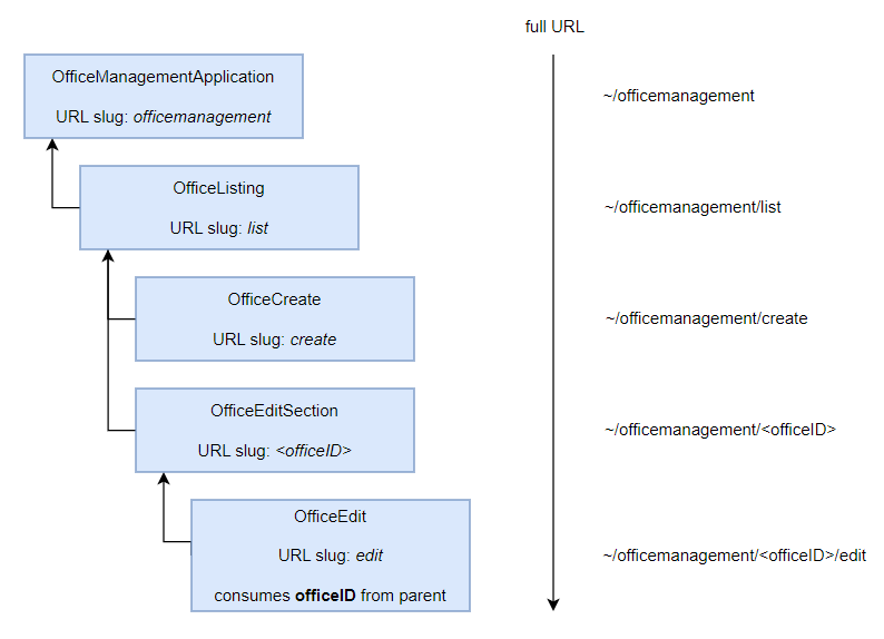 The following diagram shows the final UI page hierarchy of the Office management application: