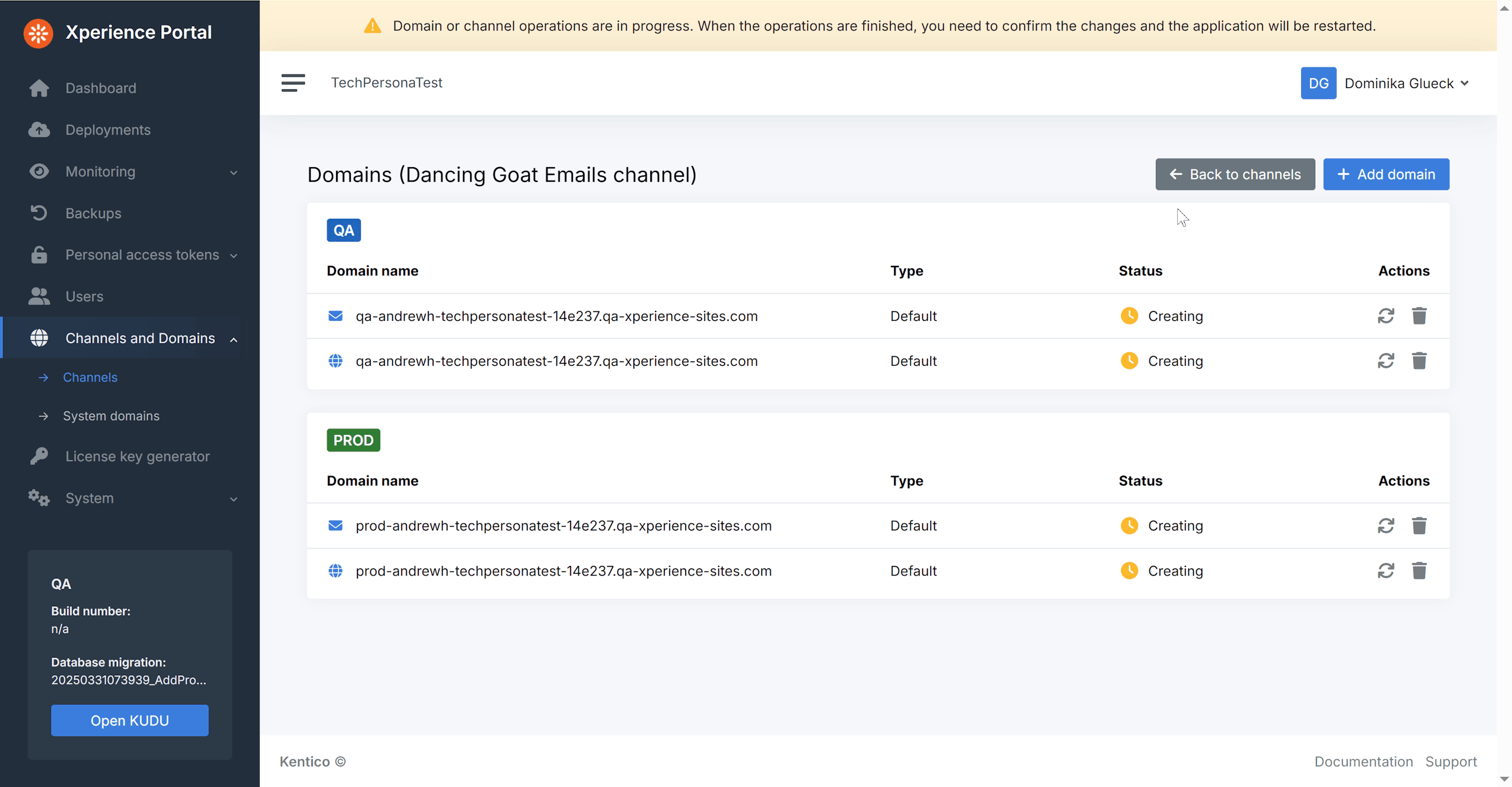 The Xperience portal allows you to also set up custom domains, but you can only do this in PROD, so we will come back to the topic later.