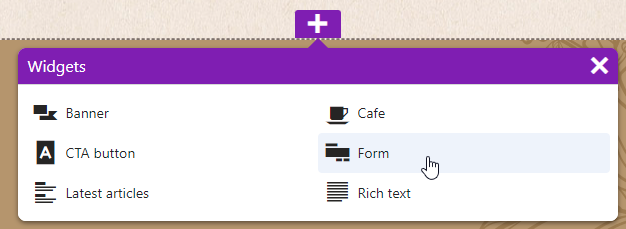 - Add a Form widget to the desired editable area.