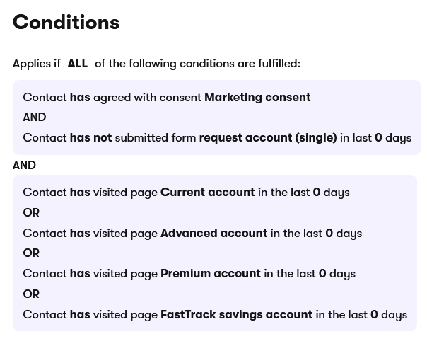 The conditions in the new Contact group should look like this: